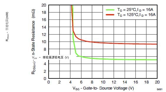 CSD19531 100V 5.3mΩ MOSFET Qg 與VGS曲線如圖1所示,RDS(on)與VGS曲線如圖2所示。雖然該MOSFET的RDS(on)規格為VDS = 6V,但可以看到RDS(on)曲線在6V時仍然具有明顯的下降。在VGS = 8V時,曲線變得更平坦。圖1顯示了隨VGS增加的柵極電荷,正如預期,其斜率變化接近閾值電壓。