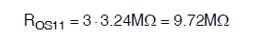 在本例中,選擇上分壓電阻ROS11,由3個串聯的3.24 MΩ,1206 SMT電阻組成,如等式8所示: