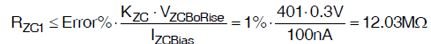 其中RZC1是ZCD/CS分壓器頂部電阻的電阻,RZC2是ZCD/CS分壓器底部電阻的電阻。與VOSNS分壓器非常相似,可以通過ZCD引腳檢測精度的小幅折衷增加RZC1和RZC2的電阻。等式14將ZCD偏置電流引起的精度下降限制在1%以下:
