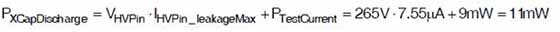 對於並聯最大線路電壓265 Vrms和0.33μF,每個的損耗因數為0.00022,X電容消耗的功率為6.4 mW。