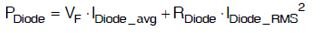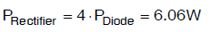 橋式整流器中的功率損耗是導通期間的正向電壓和每個二極體的寄生電阻的結果。每個二極體的總功率損耗用等式21表示: