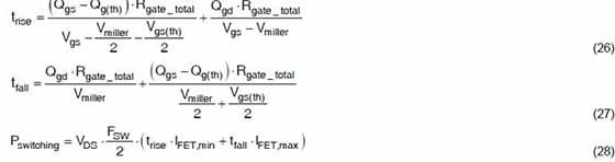 升壓開關元件中的總功率損耗可以通過由開關的導通電阻引起的導通損耗和驅動MOSFET的柵極的開關損耗來描述。可以用等式24計算導通損耗: