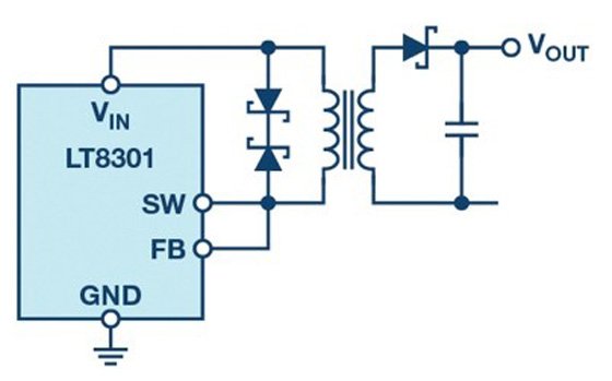 圖1.無需隔離回饋路徑的LT8301反馳式穩壓器。