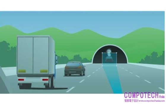 圖2:來車的前雷達需要足夠高的角解析度來區分隧道和停止車輛。毫米波感測器可以穿透任何能見度情況,比如煙。