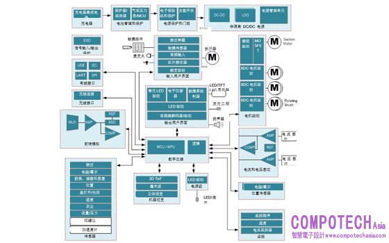 電池壽命和可靠性是真空機器人面臨的兩大設計挑戰。大多數真空機器人都是電池供電的,並從電源座充電。真空機器人的典型框圖如圖1所示。