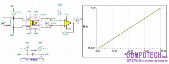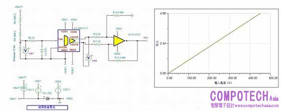 圖5:通過隔離放大器和運算放大器感測隔離電壓