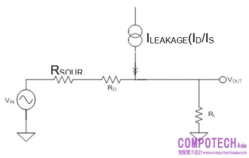 當開關斷開時,漏電流流過各自的端子(漏極或源極),並在輸出端引入偏移誤差。