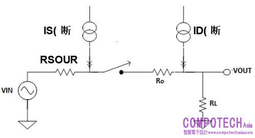 如圖2所示,輸出電壓VOUT通常連接到運算放大器的同相端,該同相端具有高阻抗。所以為了簡單起見,工程師忽略了負載電阻RL的影響。RO是開關的導通電阻。