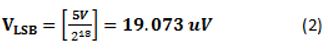 簡單來說,假定感測器阻抗Rsh為1MΩ。對於以5V為參考的24位元系統,方程式2計算對應1個最低有效位(LSB)的最小解析度或電壓,如下所示: