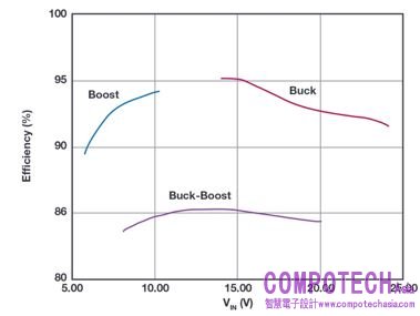 圖5.LTM8042的升壓、降壓和升降壓配置效率。