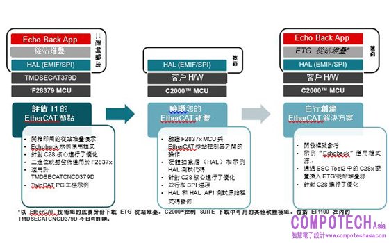 圖1:C2000 MCU本機EtherCAT從站堆疊支援流程