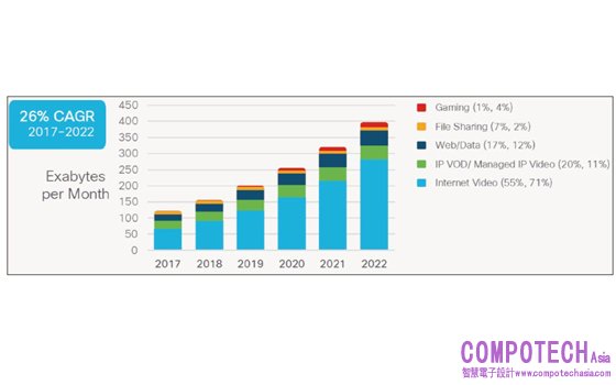 圖:全球互聯網IP 流量預測(Cisco VNI 2017-2022)