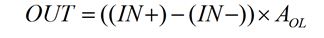 在等式1中,AOL被稱為“開環增益”。在現代運算放大器中,它通常是一個非常大的值(120 dB或1,000,000 V/V)。例如,如果IN+和IN-之間的電壓差僅為1mV,運算放大器將嘗試輸出1000V!在這種配置中,運算放大器不在線性區域內工作,因為輸出不能使輸入彼此相等(記住,理想情況下In+等於In-)。因此,運算放大器需要一種方法來控制開環增益,即通過負反饋來實現。