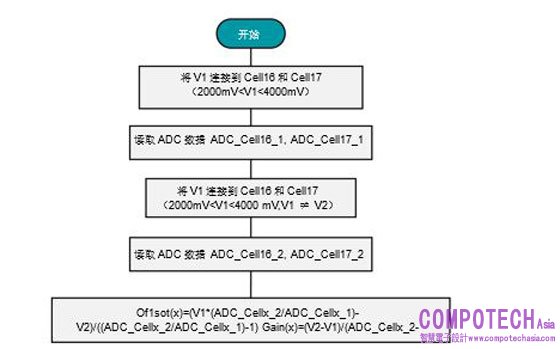 通過使用模數轉換器(ADC)測量ADC_16和ADC_17電壓,可以監控第16串和第17串單節電池電壓。考慮到R89、R96、R87、R94和ADC參考的容差,需要兩點校準以獲得更高的精度。圖3顯示了兩點校準的過程。