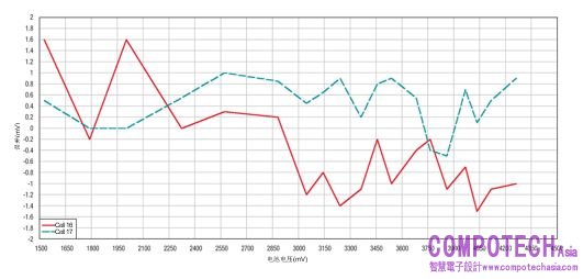 我在實驗室測試了校準後的第16串和第17串電池電壓精度;結果如圖4所示。精度達到±2mV。