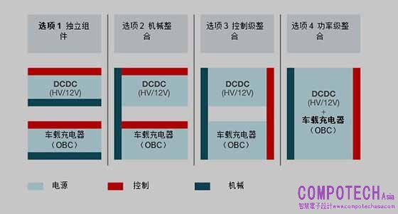 圖2:OBC和DC/DC多合一動力總成系統的四個最常見選項