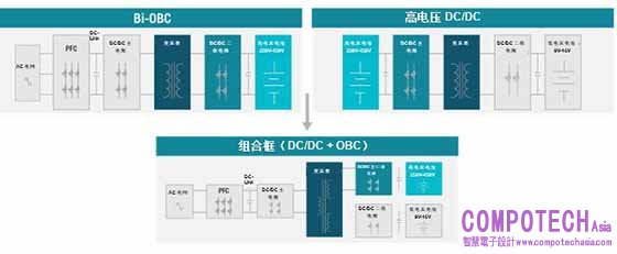 如同OBC和高電壓DC/DC整合一樣,車載充電器和三個半橋中的功率因數校正級的額定電壓非常接近。如圖5所示,即能實現與兩個終端器件元件共用的三個半橋共用電源開關,可以降低成本並提高功率密度。