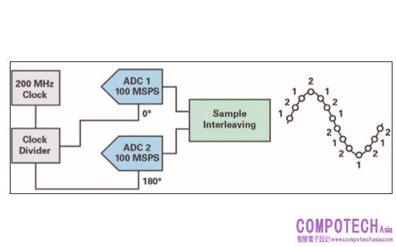 圖 : 兩個交錯式 100 MSPS ADC—基本原理圖。