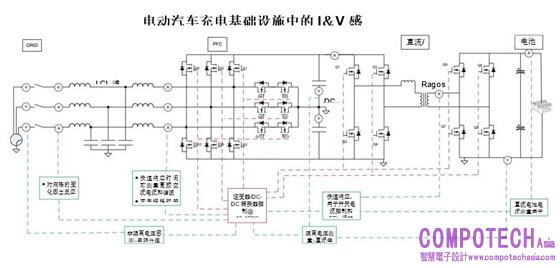 圖2所示為EV充電站的框圖,其中電流檢測位置標記為A,電壓檢測位置標記為V。