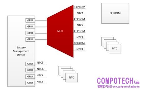 圖3:EEPROM與NTC之間的電池管理電路複用