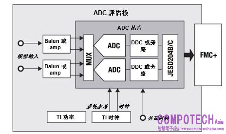 圖 5:一般高速類比轉數位轉換器 (ADC) 評估環境