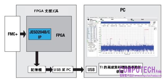 圖 3:TI 的 TSW14J56EVM,用於 JESD204B 資料擷取或模式產生