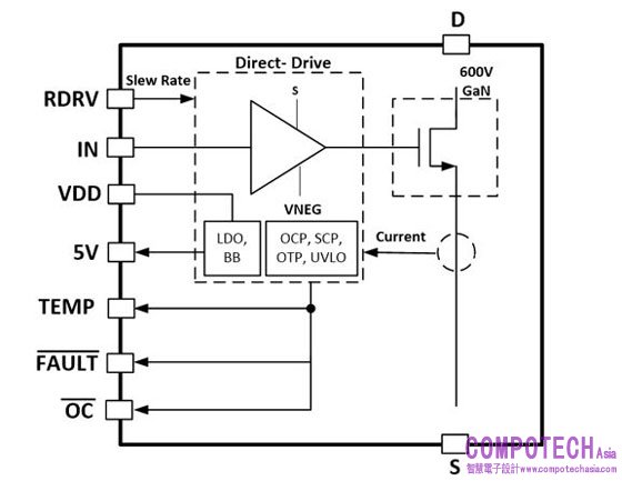 圖2:具有柵極驅動器和短路保護功能的600V GaN FET的集成