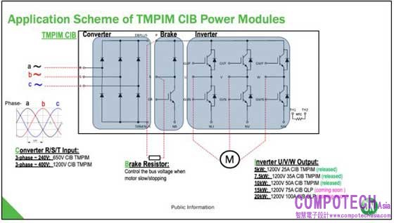 在含風扇、泵和加熱器驅動的應用中,再生功率不顯著,可以移除制動器。 在這種情況下,該模組稱為CI模組,它代表轉換器逆變器模組。