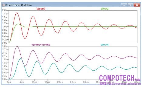 我們可以參考圖8查看它們的響應。不出所料,電阻最大的電路具有最大的阻尼係數,因此其振盪衰減也最快,如圖V(OUT2)所示。但是,我們注意到,當兩個輸出要麼相加(使電路並聯),要麼相乘(使電路串聯)時,V(OUT1)在回應中主導。因此,要簡化複雜的系統,方法之一是重點關注極點更靠近jω軸的電路,該電路會主導整個系統的響應。