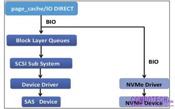 圖1:NVMe驅動可以直接繞過那些傳統的、專為HDD設計的調度層,大大縮短了處理路徑。