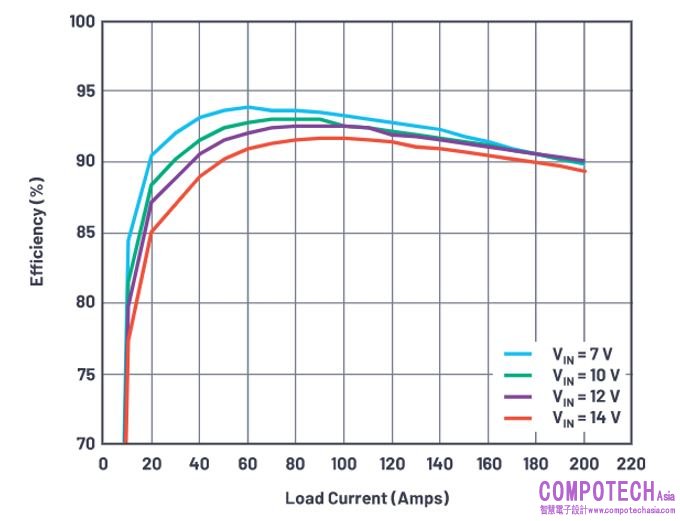 LTC7852/LTC7852-1目的在於實現高效率。LTC7852每個相位都不使用內部閘級驅動器,且都可以產生一個與電源模組、DrMOS,或外部閘極驅動器和分立式MOSFET連接的PWM輸出。DrMOS元件將閘極驅動器和MOSFET整合在一個封裝中,以實現整體尺寸更小的解決方案和更高的效率。它們主要適用於12 V輸入電壓。外部閘極驅動器和MOSFET具有傑出的散熱性能,並且可以在更高的輸入電壓下工作。LTC7852採用亞mΩ DCR檢測架構,可以準確檢測電流,其DCR值僅為0.2 mΩ,如此可以大幅降低傳導損耗。LTC7852-1專用於和DrMOS元件配套使用,後者自行提供電流檢測訊號。