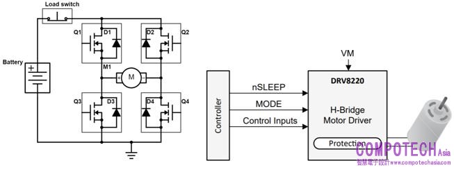 • 電池和電機驅動電路之間的離散負載開關,用於連接或移除電源;