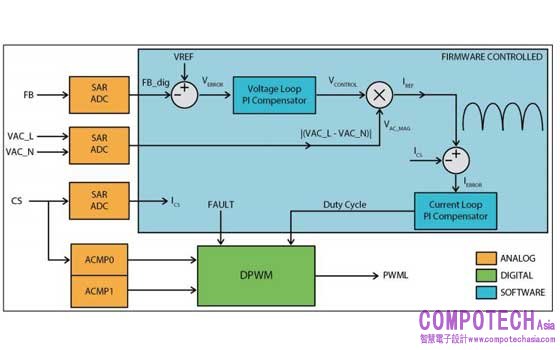 用於儲存和處理大量資料的伺服器場 (server farm) 的出現引發了人們對高效、緊湊的硬體基礎設施的興趣。 電源設計人員需要進行模擬以評估權衡選擇電感、開關頻率、電流檢測增益等參數,同時優化系統性能指標如功率因數 (PF)、總諧波失真(THD)、控制回路頻寬和相位裕度。通常在數控電源中,很容易無視系統中各個點的增益,例如,在將浮點補償器係數轉換為定點形式時。本文旨在為採用數位平均電流模式控制方案進行設計的工程師提供指南,這種控制方案常用於大功率 PFC 應用中。