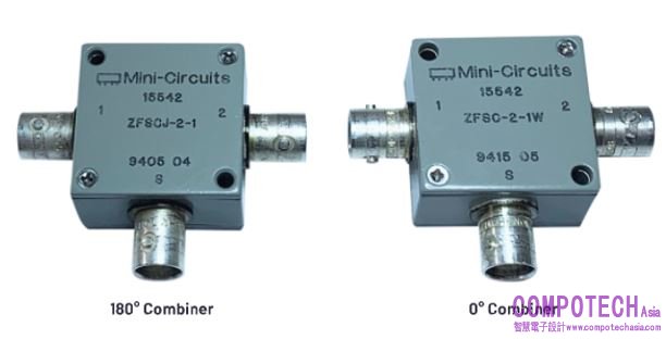 T型功率合成器是一種被動元件,可將兩個輸入訊號合成為一個埠輸出。0°合成器在輸出埠產生輸入訊號的向量和,而180°合成器產生輸入訊號的向量差1。因此,0°合成器可用於產生VCM,180°合成器產生 VDM.
