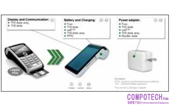 圖:移動 POS 設備以及推薦的保護和傳感元件