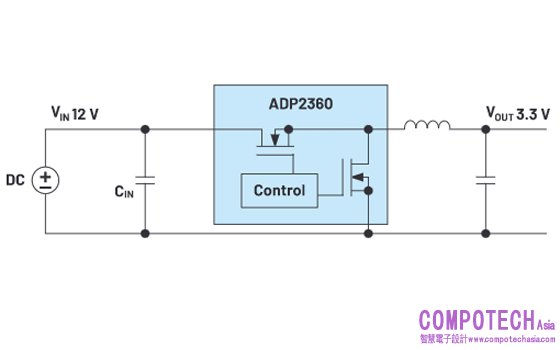 例如,12 V電源電壓的典型輸入電壓範圍為8 V至16 V。圖1所示為從12 V標準電壓產生3.3 V電壓的降壓型轉換器(降壓拓撲)。