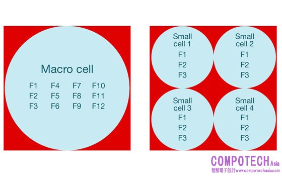 圖1:巨集蜂窩網路頻率分佈與小型蜂窩網路頻率分佈比較