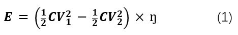 圖 3 分別顯示了採用 TPS61094 或僅使用超級電容器的電源緩衝器解決方案。在 TPS61094 解決方案中,超級電容器電壓設定為 2V。TPS61094 為連續負載供電時,可從超級電容器吸收功率,直到超級電容器電壓降為 0.6V。因此,可以借助公式 1 計算超級電容器上的可用能量: