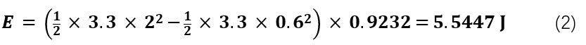 在 HLC 或 EDLC 解決方案中,可用能量隨著電池電壓的變化而變化。在溫度為 –40°C 且電流為 10mA 時,LS33600 電壓會降至 3V。利用公式 3 計算可用能量為: