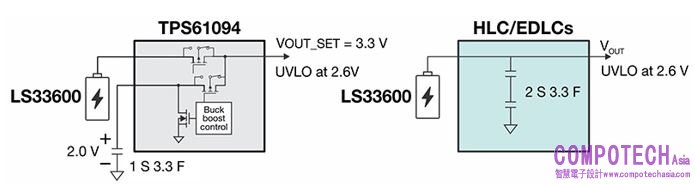 圖 3:TPS61094 與 HLC/EDLC 配置