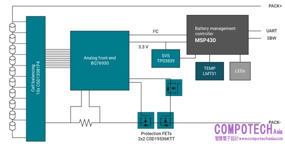 部分電池組方案,可能採用 MCU 來檢測環境資訊(例如溫度)。而MSP430FR235x上所具有的智慧類比組合 (SAC) 能給該類方案提供極大的助力。 SAC 可以替代運算放大器和其他類比信號調節元件,從而縮減物料清單 (BOM)。另外 SAC 可以不借助外部電路元件,如電阻和偏置信號,以實現信號調節與放大,減少PCB空間,並降低成本。
