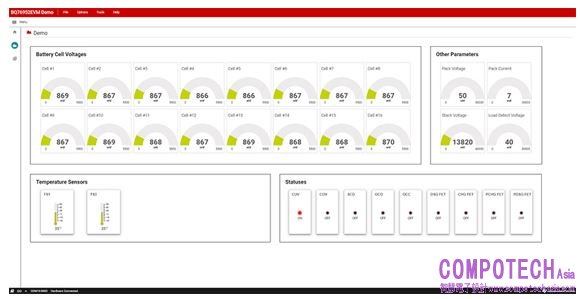 一個全新系統的開發可能是一項挑戰性的任務。MSP430團隊提供的圖形化使用者介面 (GUI),可加快 BQ76952 的開發和調試過程,如圖 2 所示。將 MSP430FR2355 LaunchPad 開發套件與 BQ76952 評估模組 (EVM)配套使用,您就可以詳細地瞭解重要電池資料。