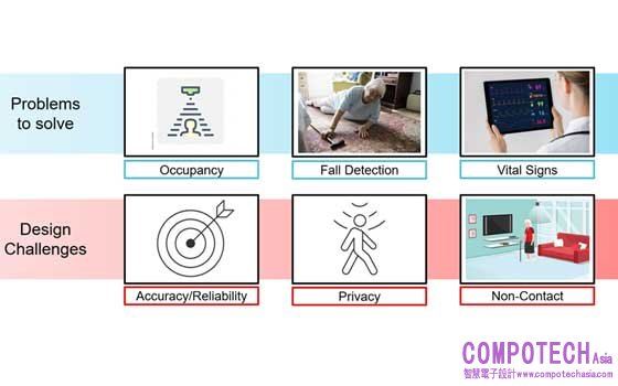如圖1所示,這些醫用感測器均面臨各自的挑戰。為確保有效運行,消費者必須記得佩戴並為其充電,這可能會影響舒適性或可行性。有些型號需要患者在發生健康事件時按下按鈕,但如果患者無行為能力時,便無法發揮作用。最後,感測器需要非常準確,以便區分跌倒事件和日常活動。當一個人快速坐下或拍手時,當前的感測器往往會誤判。某些類型的感測器(如光學攝像頭中使用的感測器)放置在家中時,也會產生隱私問題。