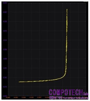 將波形產生器1配置為產生具有9 V峰對峰值幅度和500 mV失調的100 Hz三角波。這將使NMOS開關電晶體具有+5 V至-4 V的電壓擺幅。考慮到NPN電流源Q2,電壓擺幅範圍不能到-5 V。確保先打開外部用戶電源(Vp和Vn),然後運行波形產生器。在XY模式下配置示波器介面,X軸上為通道1,Y軸上為通道2(開關上的電壓)。使用數學函數計算電阻(C2 / 1 mA)。注意:可透過測量R1兩端的電壓及其實際電阻來獲取更精準的電流源估算值。