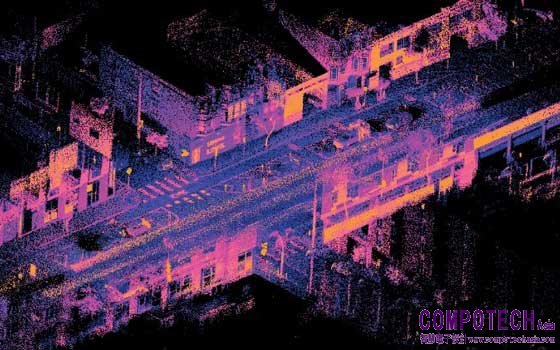 為達到超越常人的安全性1,我們需要精細的3D地圖,測繪各種動態物體(包括其他車輛、行人、腳踏車),被視為是自駕車的關鍵功能。其中雷射探測與測距(LIDAR)光達感測器一般認為是車載設備中最有用的系統,因為它們能產生精細的地圖。圖1顯示這種地圖的範例。
