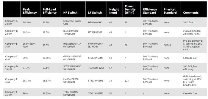表3:市場上寬能隙參考設計的競爭分析。