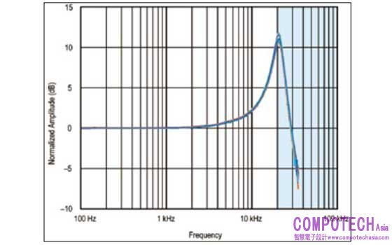 圖 :ADXL1002 MEMS 加速度計的頻率響應。