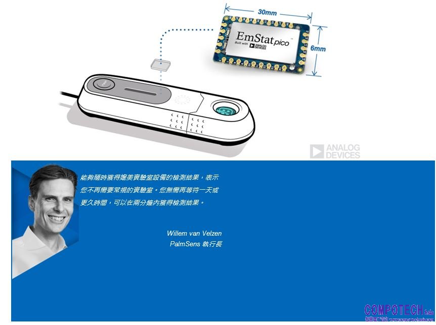 ADI Brian Coffey表示:「與PalmSens合作,就是為了提供此款完整的解決方案——一款隨插即用的測量模組。客戶反應使用後能更快將新型救援健康診斷工具推向市場,我們對此感到非常高興。」