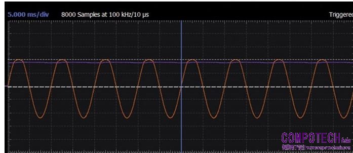 圖2.使用自供電運算放大器試驗板電路的主動半波整流器