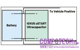 決方案IOXUS 是超級電容單元與模組製造,以及創新uSTART 超級電容的領導廠商。uSTART 超級電容是一款針對汽車與運輸應用開發的 Smart Power 超級電容,發揮傳統電池與超級電容相結合的優勢,創造出一種混合電力系統。uSTART 超級電容與汽車電池並聯,如圖 1 所示,並在啟動 ( 點火 ) 與所有其他消耗大電流情境提供高電流,發揮超級電容的快速放電的能力。在電流需求較低時由電池提供電力,並和發電機一同工作為 uSTART 超級電容充電。uSTART 超級電容會主動管理車輛電池的充放電能量曲線 (energy profile),為所有工作狀態提供穩定電壓。